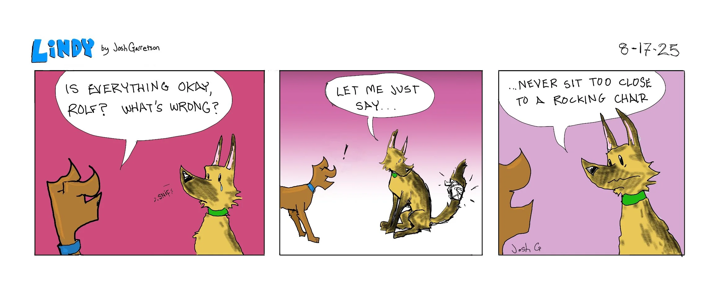 Meet Lindy! Part Swedish Shepherd, he makes his home in Lindsborg and hangs out here every Sunday with his pals. Enjoy the journey in Little Sweden, USA, with local student artist Josh Garretson. To see a sampling of other installments of Lindy, go here!